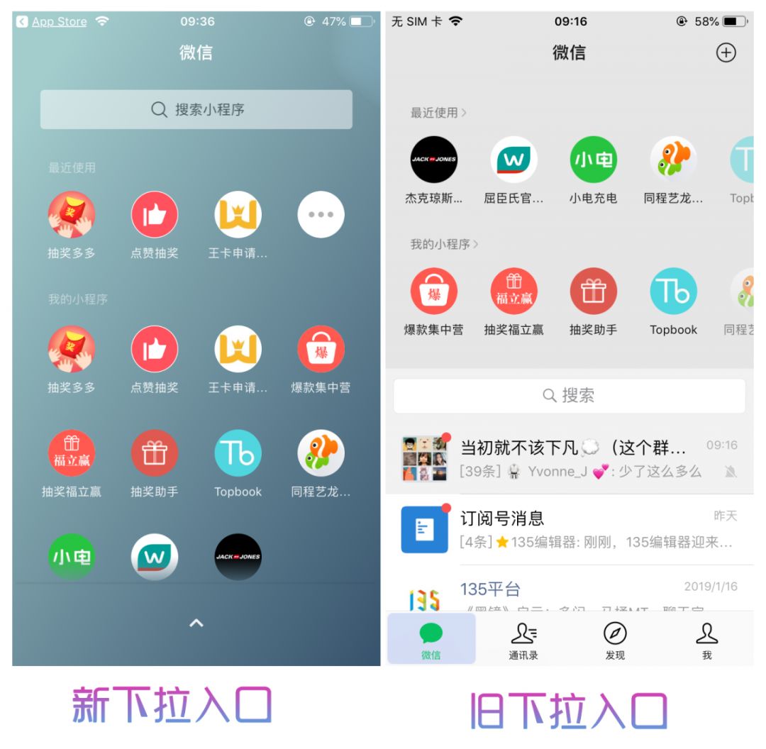 最大的變化就是主界面下拉的小程序界面搖身一變,成了“小程序桌面”!