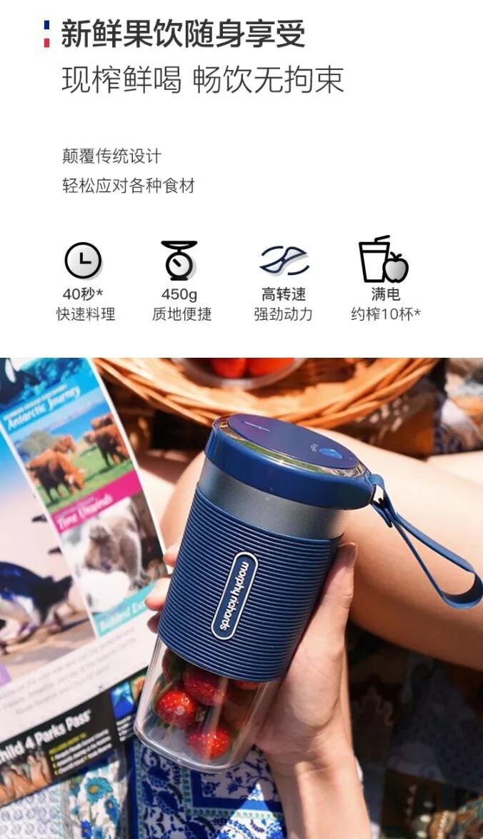 我在網(wǎng)易嚴選上看到一個英國摩飛便攜式榨汁杯,廣告是這樣: