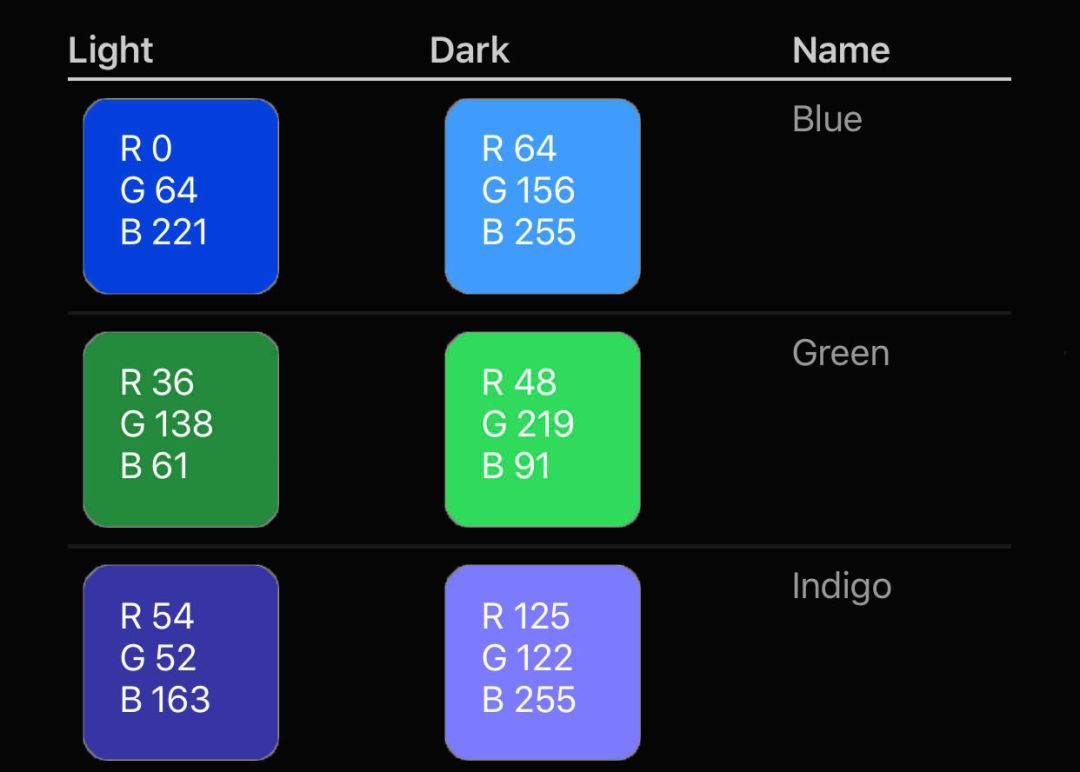因此,我建議引入蘋果暗黑設(shè)計(jì)規(guī)范中的「語(yǔ)義色彩」。