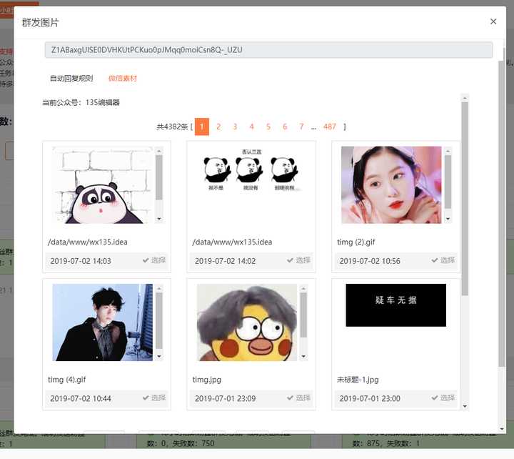 設(shè)置群發(fā)圖片消息時(shí),可以選擇后臺(tái)設(shè)置的圖片自動(dòng)回復(fù)消息內(nèi)容,也可以選擇公眾號(hào)素材庫(kù)的圖片。